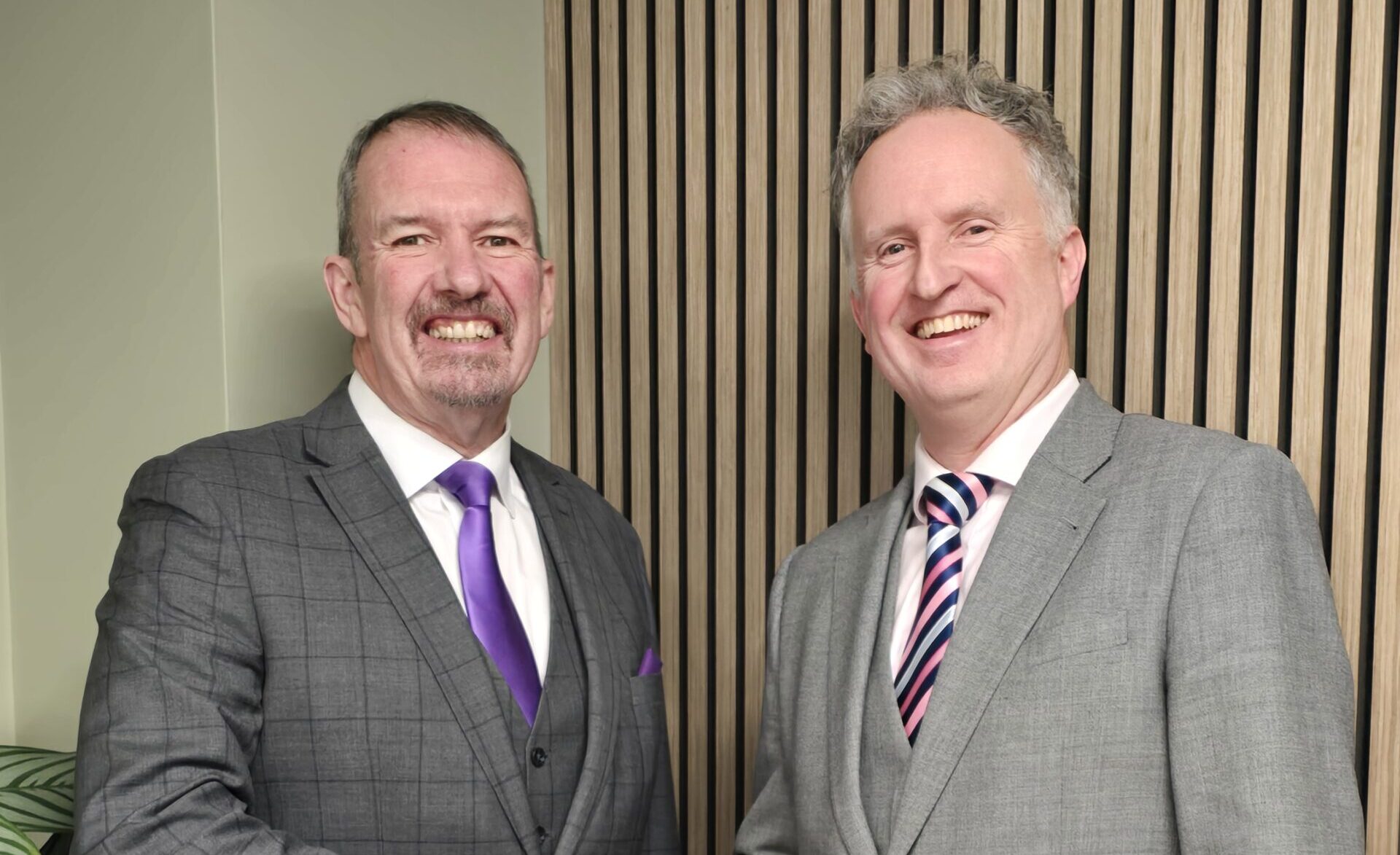 Michael Conlon (left) hands over baton as chair to Guy Parker (right)
